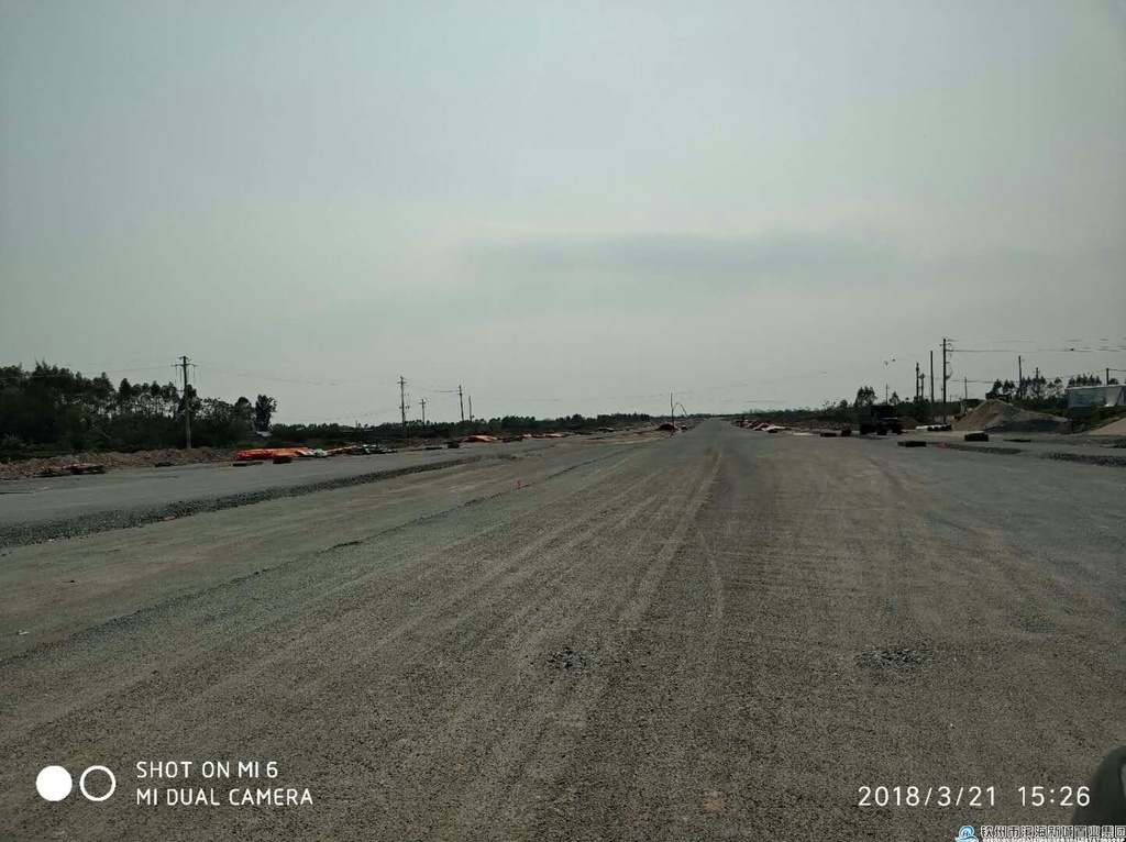 該項(xiàng)目于2017年2月22日進(jìn)場(chǎng)施工,道路約1060m,路寬60m。主要建設(shè)內(nèi)容:道路工程、交通工程、排水工程、照明工程和綠化工程等。合同價(jià)59958018.42元,工期200日歷天,行車(chē)道及非機(jī)動(dòng)車(chē)車(chē)道級(jí)配碎石鋪設(shè)約90%,k2+200及k1+900處過(guò)路管全包施工。雨、污水管網(wǎng)基本建成,行車(chē)道及非機(jī)動(dòng)車(chē)車(chē)道級(jí)配碎石鋪設(shè)約90%。施工單位中余建設(shè)集團(tuán)有限公司,監(jiān)理單位廣西益建工程建設(shè)監(jiān)理有限責(zé)任公司。