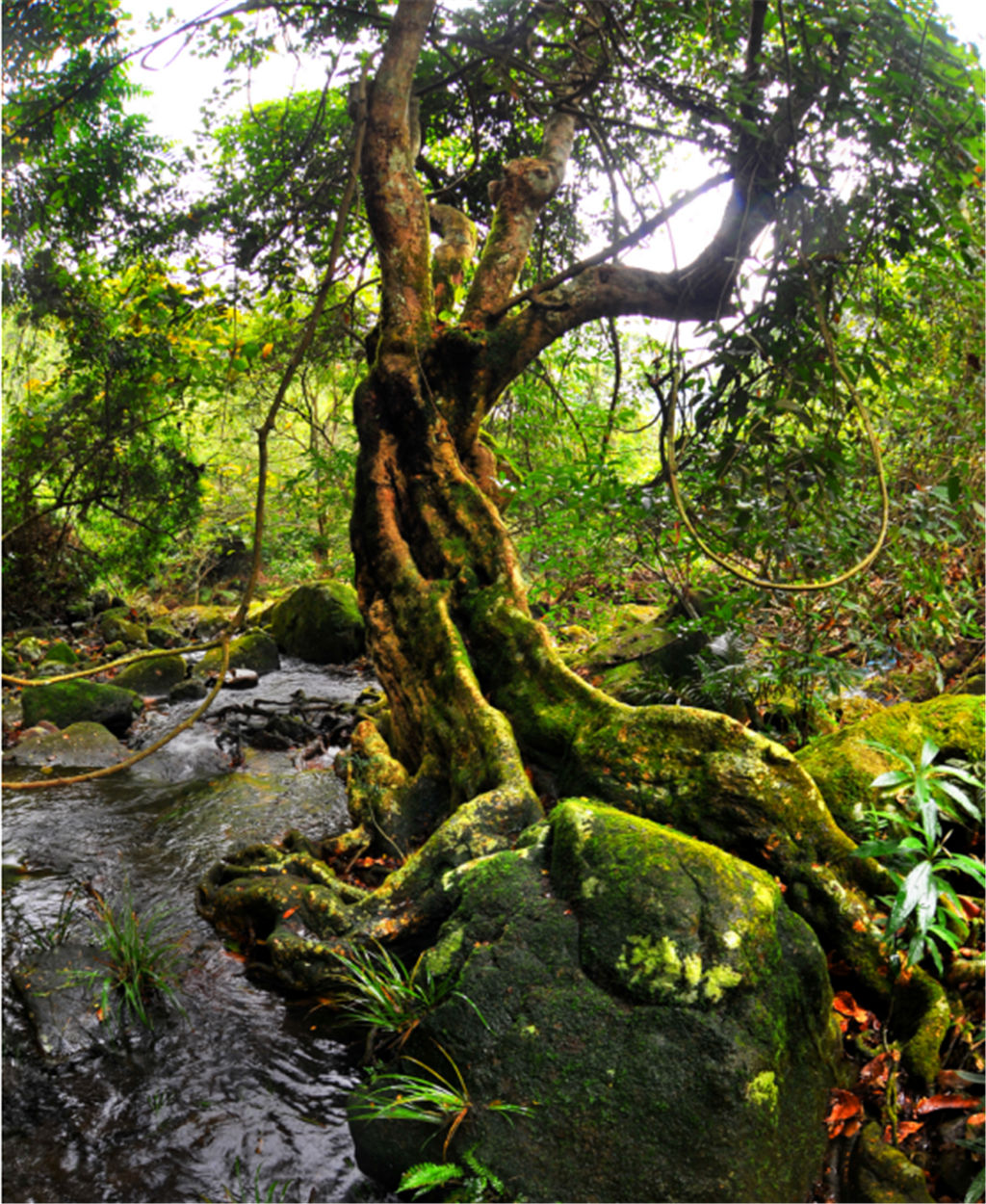 山中到處是淙淙溪流,溪水清瀅碧透,游魚可數(shù)。溪旁綠樹成蔭,遮天蔽日。