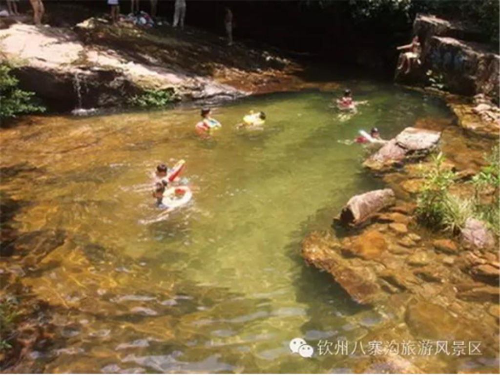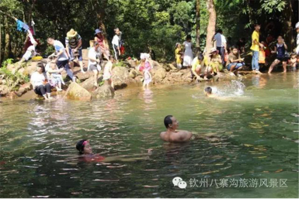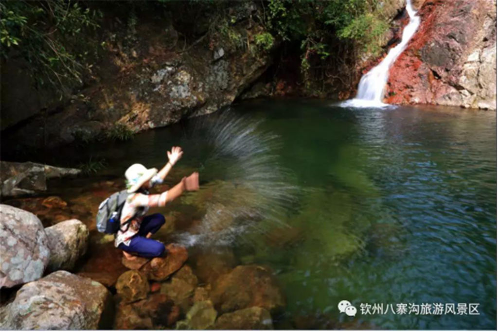 在沒去到八寨溝的前一天晚上,我向明天陪同我們游覽八寨溝的黎女士打聽,四川的九寨溝是因?yàn)槟抢镒畛跤芯抛刈寰劬拥恼佣妹?,而欽州的八寨溝又是如何得名的呢? 對(duì)于這一問(wèn)題,黎女士雖然一時(shí)答不上來(lái),但她很聰明,用幾個(gè)很有趣的、與“八”相關(guān)的數(shù)字化解了我們心中的疑惑:八寨溝風(fēng)景區(qū)屬于砂石巖山澗地貌,有8公里長(zhǎng),景區(qū)內(nèi)分布有80個(gè)大小不同、形態(tài)各異的泉潭,冬季冷不低于18攝氏度,夏季熱不超過(guò)28攝氏度,年平均雨量最高時(shí)達(dá)到2800毫米,年平均濕度80%,年平均日照時(shí)數(shù)1780小時(shí)……