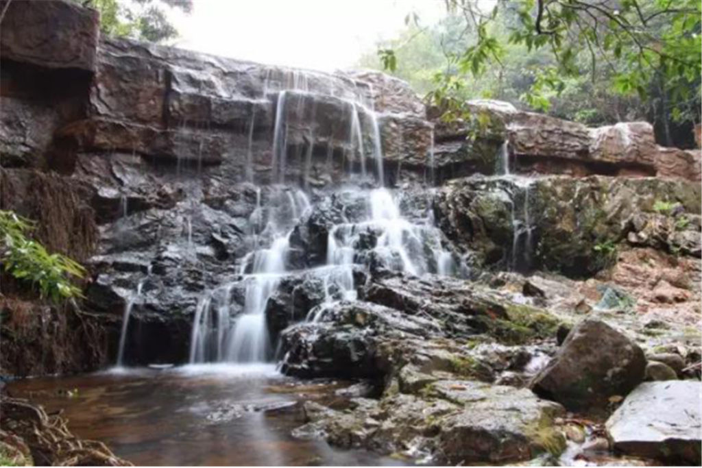 在仙女池戲水之后,我們沿著小路先后穿越了大片叢林和跨越了將軍橋,還觀看了可以遮風(fēng)避雨的寨亭,以及讓人乞福托運(yùn)的幸運(yùn)樹等風(fēng)景點(diǎn)。一路上,那些大小各異的泉潭,奇特的砂頁(yè)巖,的確使我們賞心悅目;而那些清澈的山澗,飛流直下的瀑布,更是讓我們心曠神怡。 難怪,同行的一位詩(shī)人會(huì)情不自禁地以《游欽州八寨溝有感》為題賦詩(shī)一首了,詩(shī)云:“相邀詩(shī)友出茶寮,閑步幽溝遠(yuǎn)鬧囂。仙女懷中沐澗水,將軍頭上竊一瓢。喜觀遍地野蘭長(zhǎng),驚訝參天鐵木搖。此景安能移北海?汲泉煮茗也逍遙!”