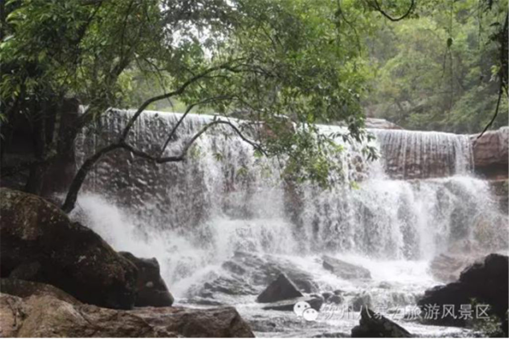 欽州的八寨溝與四川的九寨溝一樣,都具有豐饒的水源,異常清澈,天然原生態(tài),均為未遭到現(xiàn)代文明入侵和污染的圣潔凈土。也許是八寨溝的水都發(fā)自十萬(wàn)大山的深處吧,匯聚著眾多的山泉沿著溝壑奔騰而下,一路隨心翻浪,一路高亢歡歌,從而在長(zhǎng)年的沖擊中形成了大大小小的泉潭,并且順著山勢(shì)形成了不少或大或小的瀑布。