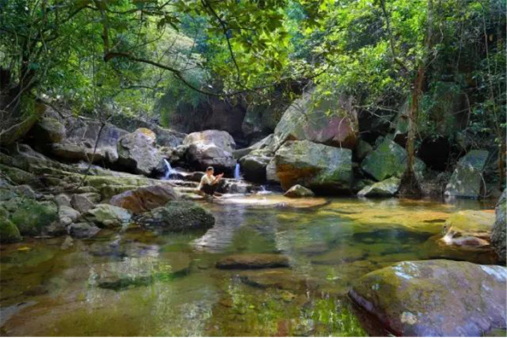 每個(gè)石潭不僅都有著美麗的名字,比如阿蘭灘、日月潭、將軍潭等等,而且每個(gè)石潭都仿佛是一個(gè)天然浴池,大的深達(dá)三、四米,可容上百人同時(shí)戲水;小的如浴盆,只容一兩人入浴。尤其是“仙女池”,更是一個(gè)盤踞其中的天然浴池,清清的水面上常常籠罩著一層淡淡的水霧,平添幾分神秘。
