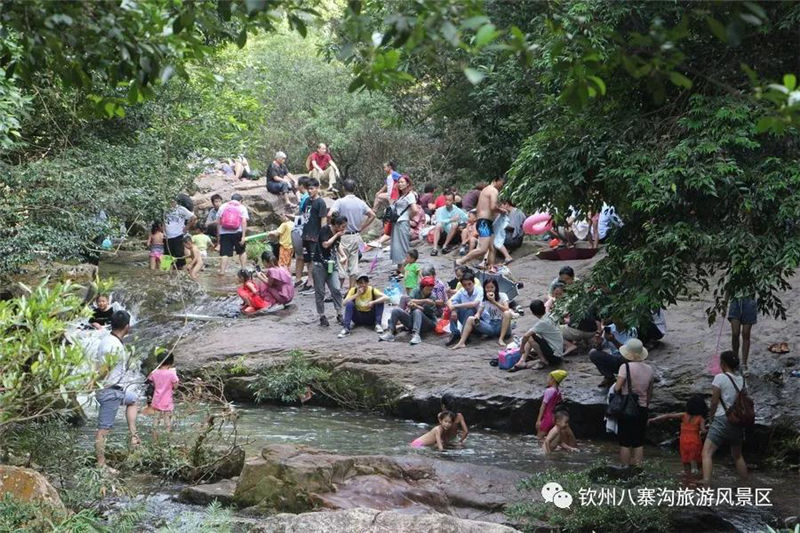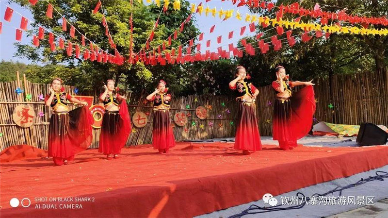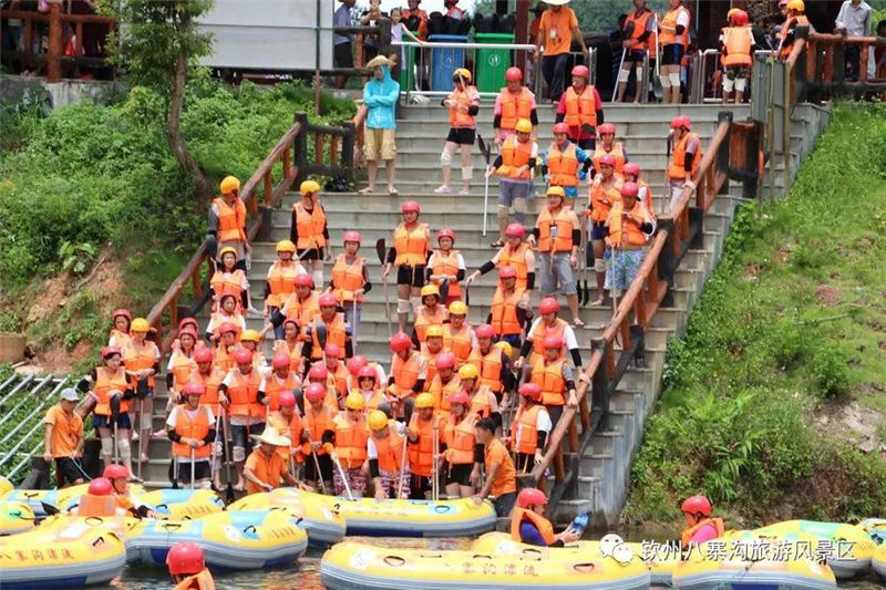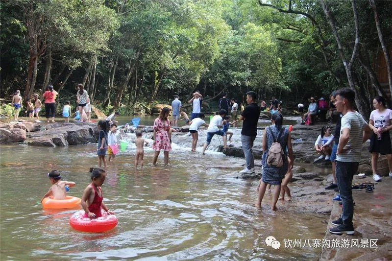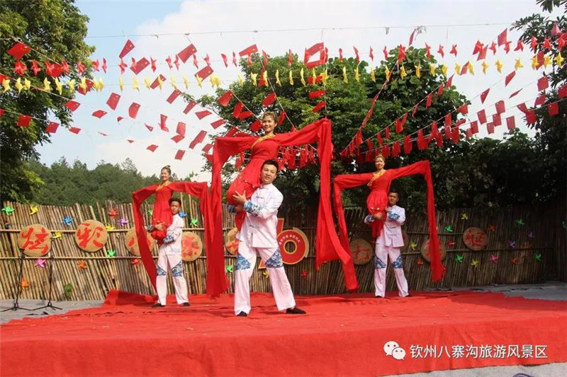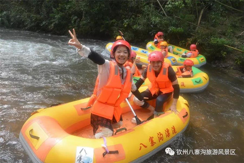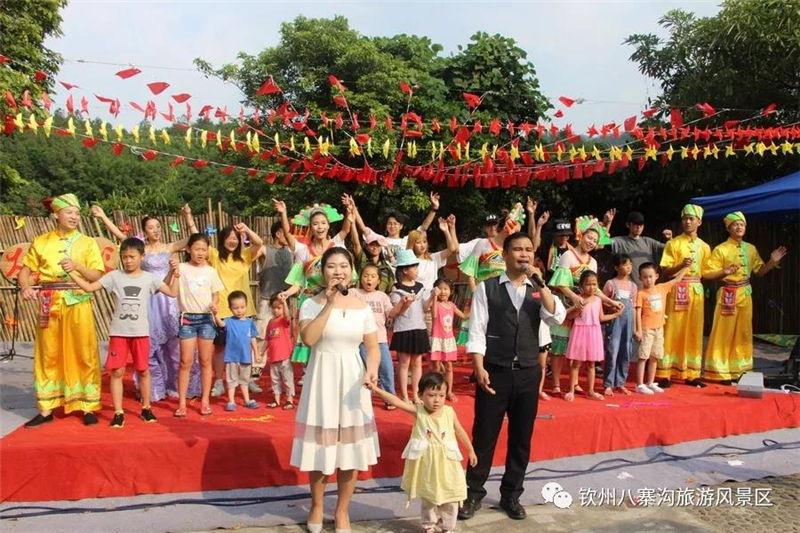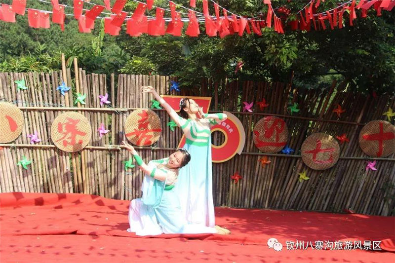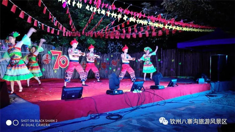 國(guó)慶期間景區(qū)舉辦以“炫彩八寨喜迎70華誕”為主題活動(dòng),受到眾多游客親睞。游客們白天可以觀看精彩歌舞文藝演出,賞彩虹風(fēng)車展,玩真人CS運(yùn)動(dòng),體驗(yàn)欽州第一漂的八寨溝森林漂流,登山泡山泉潑水狂歡,徒步暢游原始森林的美景,呼吸天然氧吧里的新鮮空氣,整個(gè)景區(qū)呈現(xiàn)一片游客如織、喜樂(lè)融融的景象。