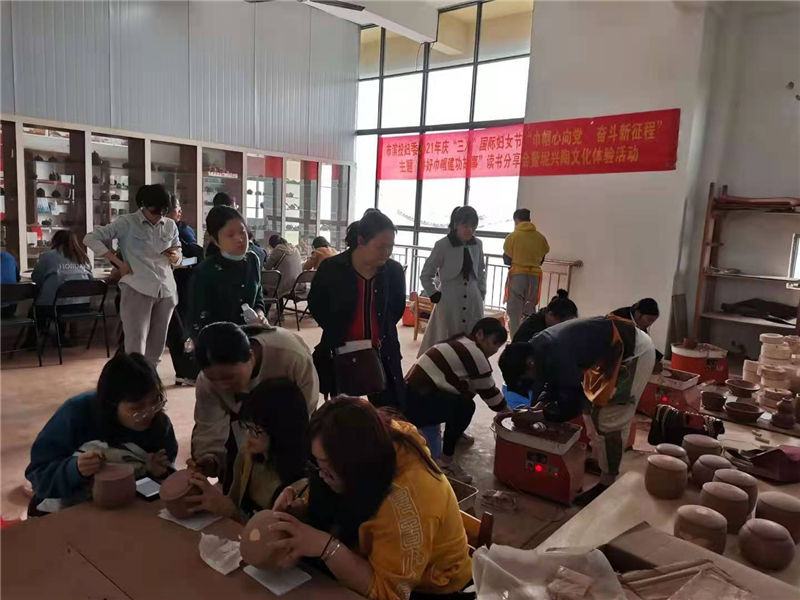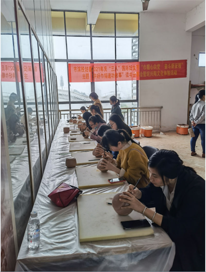 2021年3月8日,欽州市濱海新城投資集團有限公司婦委會圍繞“巾幗心向黨,奮斗新征程”主題,組織開展2021年慶“三八”國際勞動婦女節(jié)“講好巾幗建功故事”讀書分享會暨坭興陶文化體驗活動,活動在欽州方圓陶瓷歷史文化館舉行。