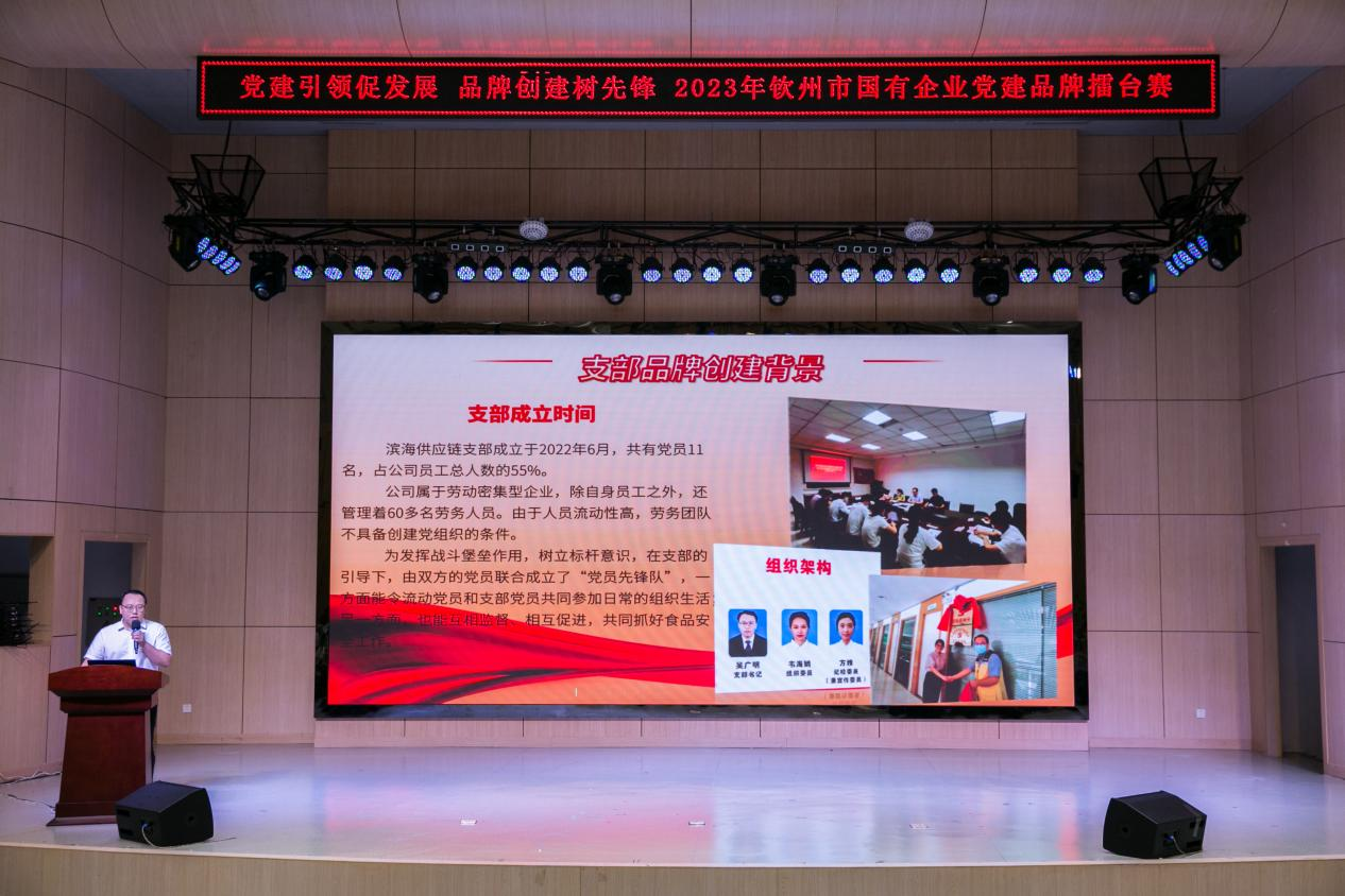 7月14日,由市委組織部、市國(guó)資委聯(lián)合舉辦的“黨旗引領(lǐng)促發(fā)展 品牌創(chuàng)建樹(shù)先鋒”2023年欽州市國(guó)有企業(yè)“十大黨建品牌”擂臺(tái)賽在市圖書館三樓報(bào)告廳舉行。本次擂臺(tái)賽,有市直、各縣(區(qū))等13個(gè)單位參加。經(jīng)過(guò)激烈角逐,集團(tuán)公司黨委下屬供應(yīng)鏈公司黨支部參賽的黨建品牌“黨旗引領(lǐng),食安先鋒 ”,被評(píng)為欽州市國(guó)有企業(yè)“十大黨建品牌”。