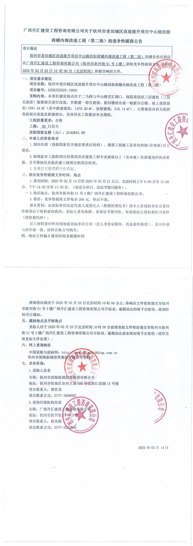 競爭性磋商公告-欽州市老舊城區(qū)改造提升項目中山路沿街商鋪內(nèi)部改造工程(第二批)