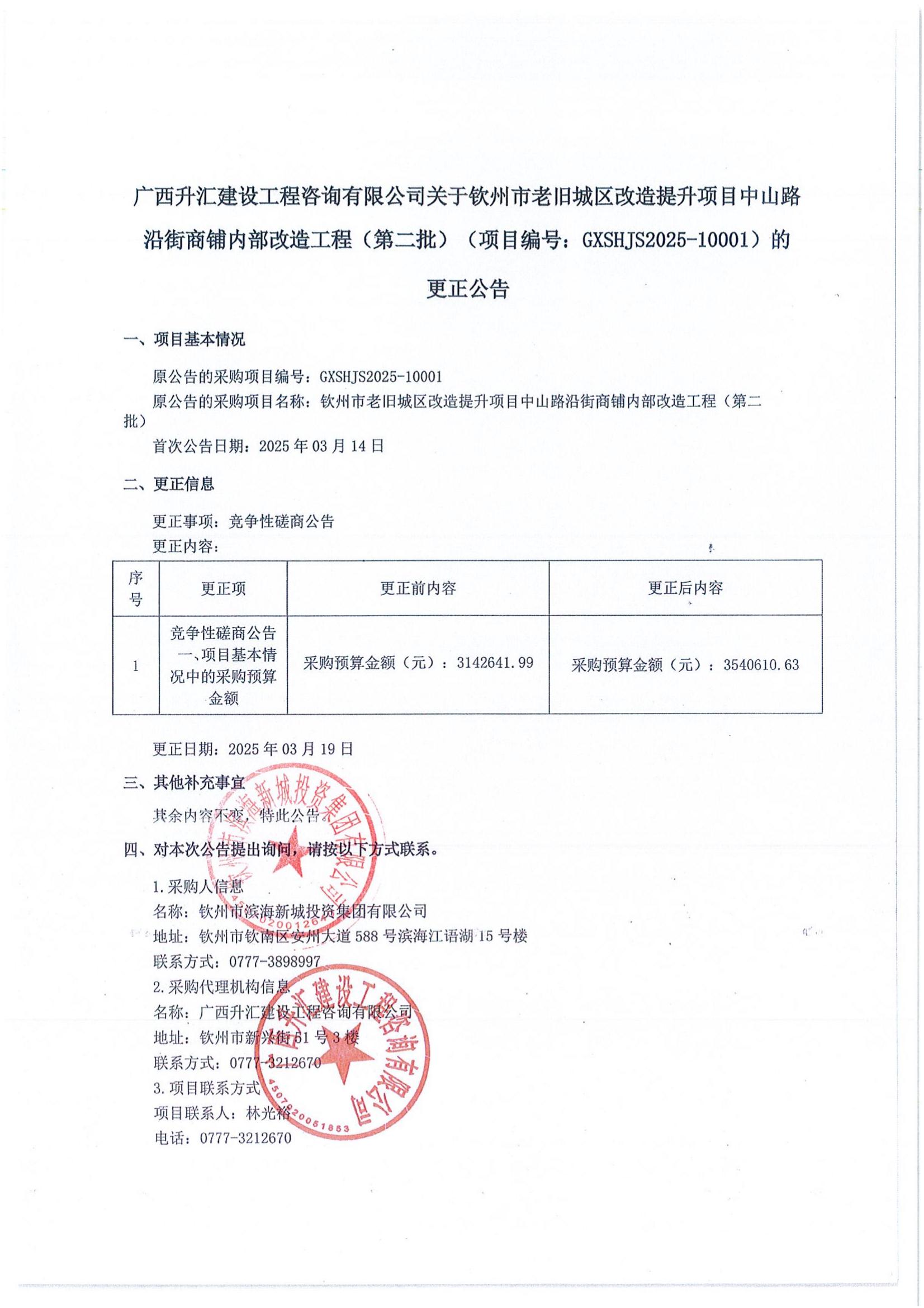 欽州市老舊城區(qū)改造提升項目中山路沿街商鋪內(nèi)部改造工程(第二批)(項目編號:GXSHJS2025-10001)的更正公告