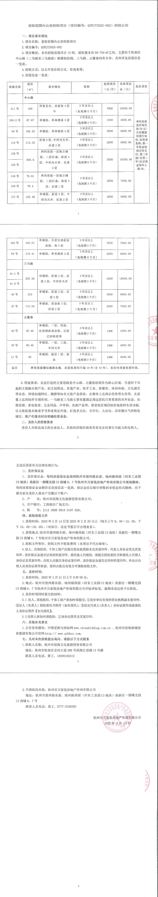 老街范圍內(nèi)公房招租項目(項目編號:QZWJY2025-002)招租公告