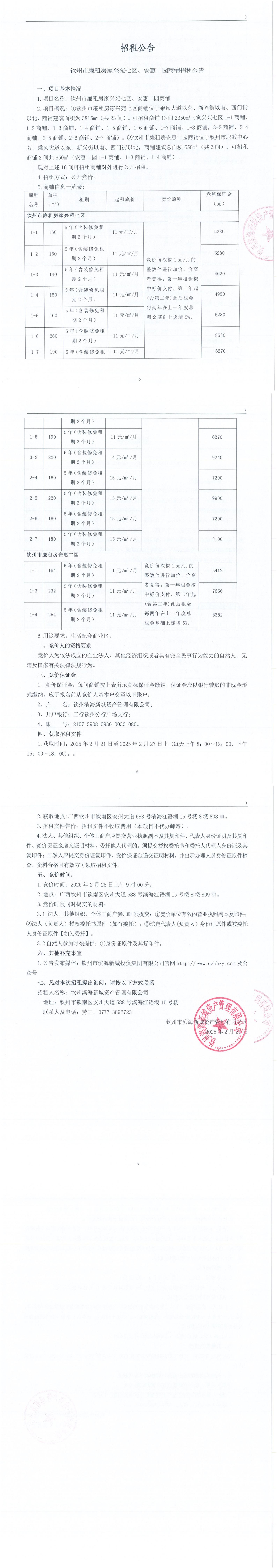 欽州市家興苑七區(qū)、安惠二園商鋪招租項目成交結(jié)果公告