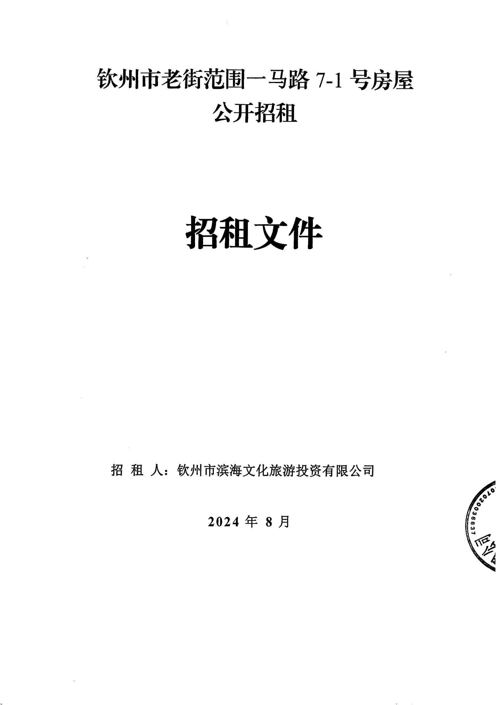 欽州市老街范圍一馬路7-1號(hào)房屋公開招租招租文件