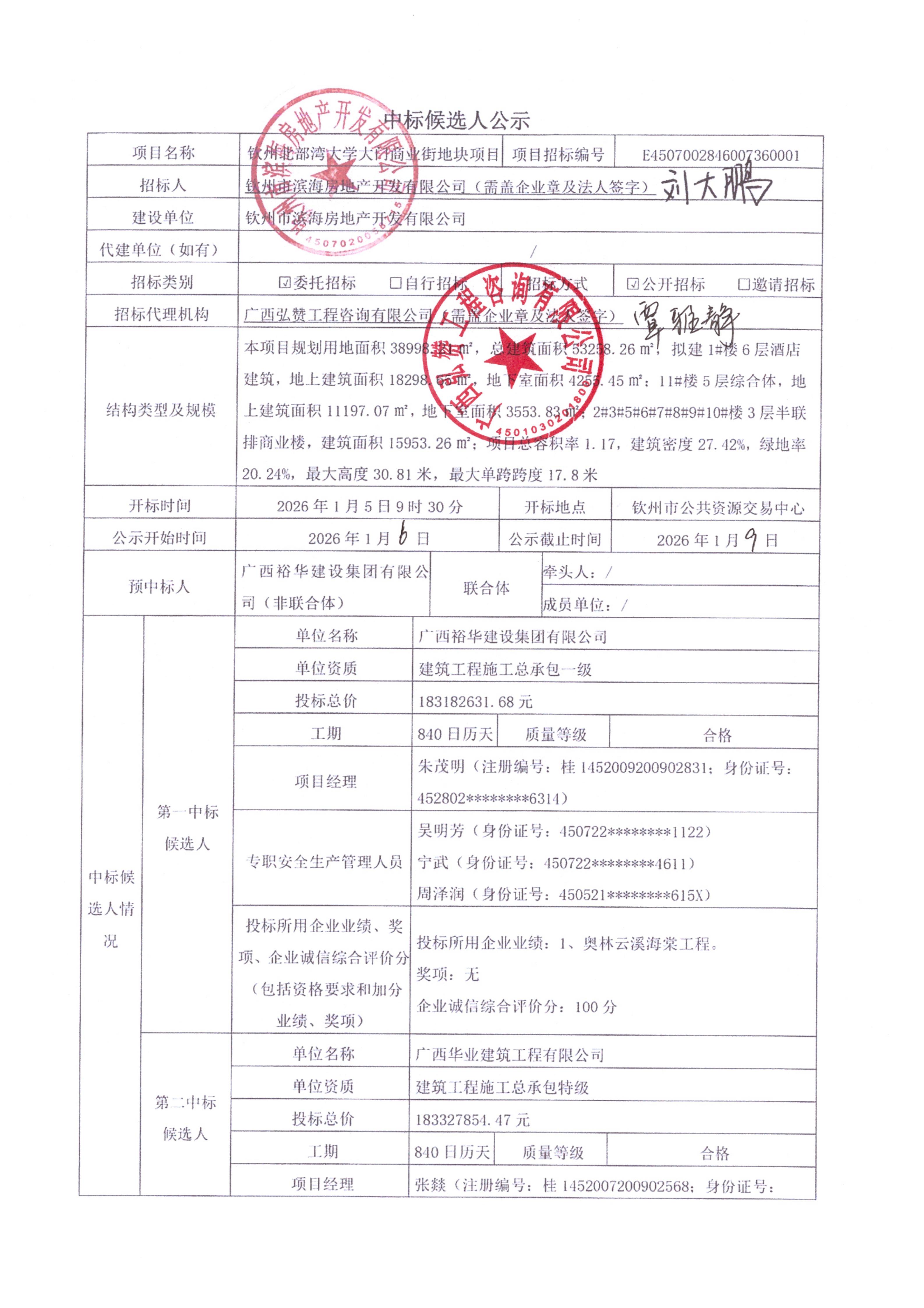 欽州北部灣大學(xué)大門商業(yè)街地塊項(xiàng)目中標(biāo)候選人公示