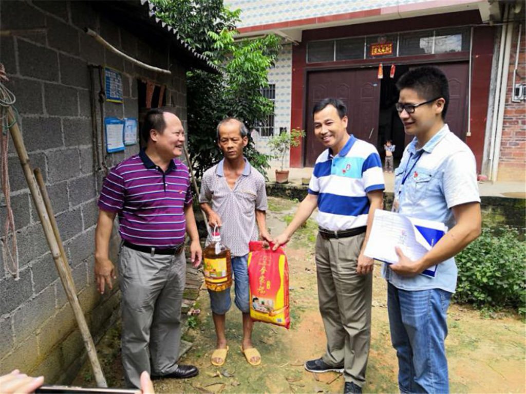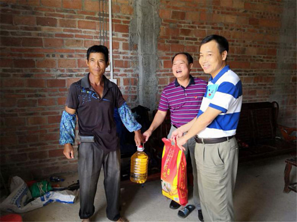 圖為幫扶后盾單位向新禾村村干部贈送節(jié)日慰問品