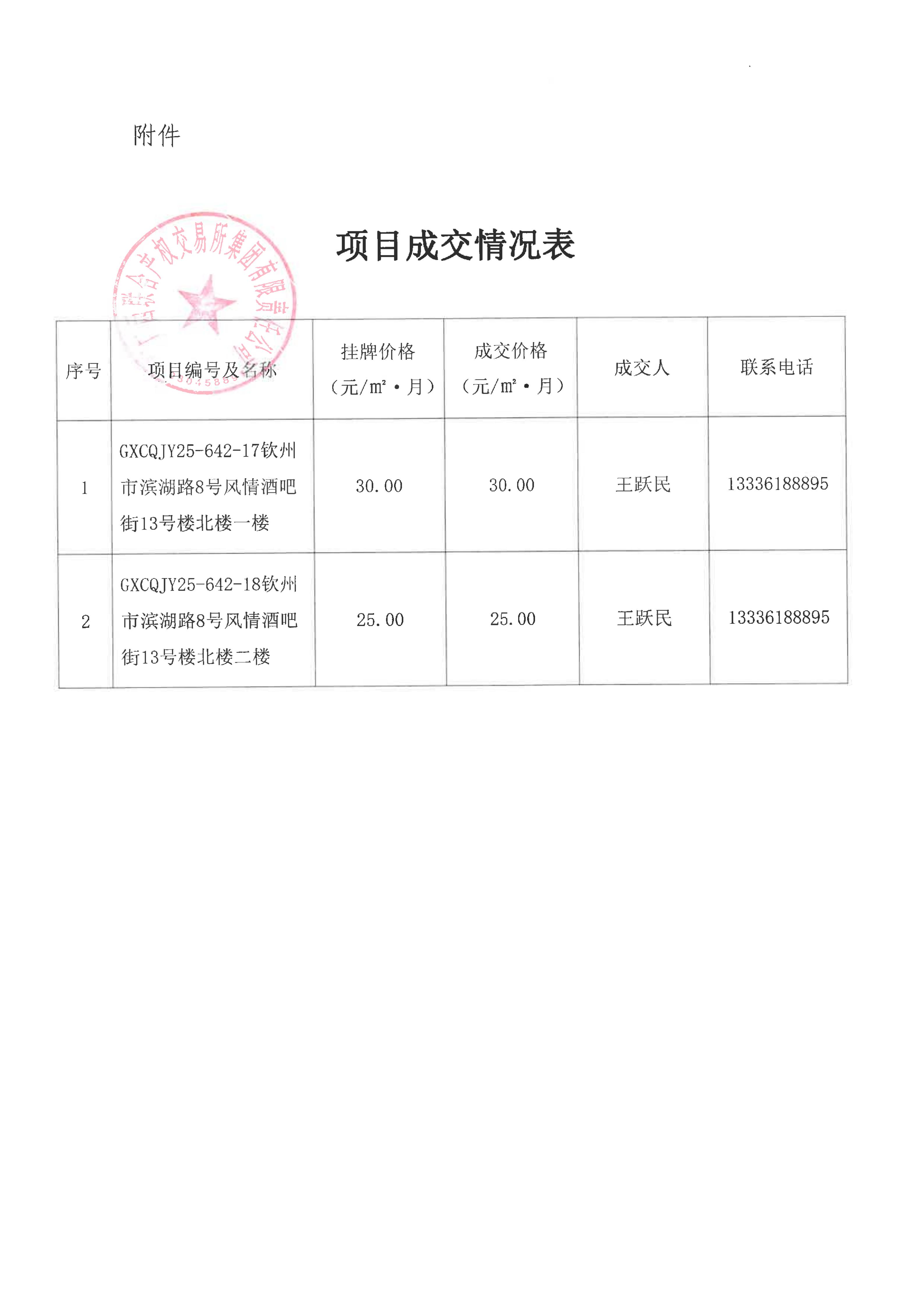 關(guān)于欽州市濱湖路8號(hào)風(fēng)情酒吧街(蘭亭街)房屋公開(kāi)招租項(xiàng)目成交情況的函(13北)