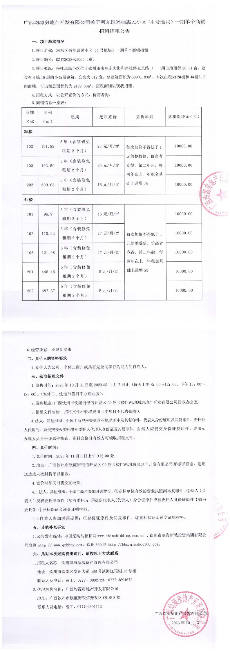 關(guān)于興桂惠民小區(qū)(4號地塊)二期商鋪招租公告