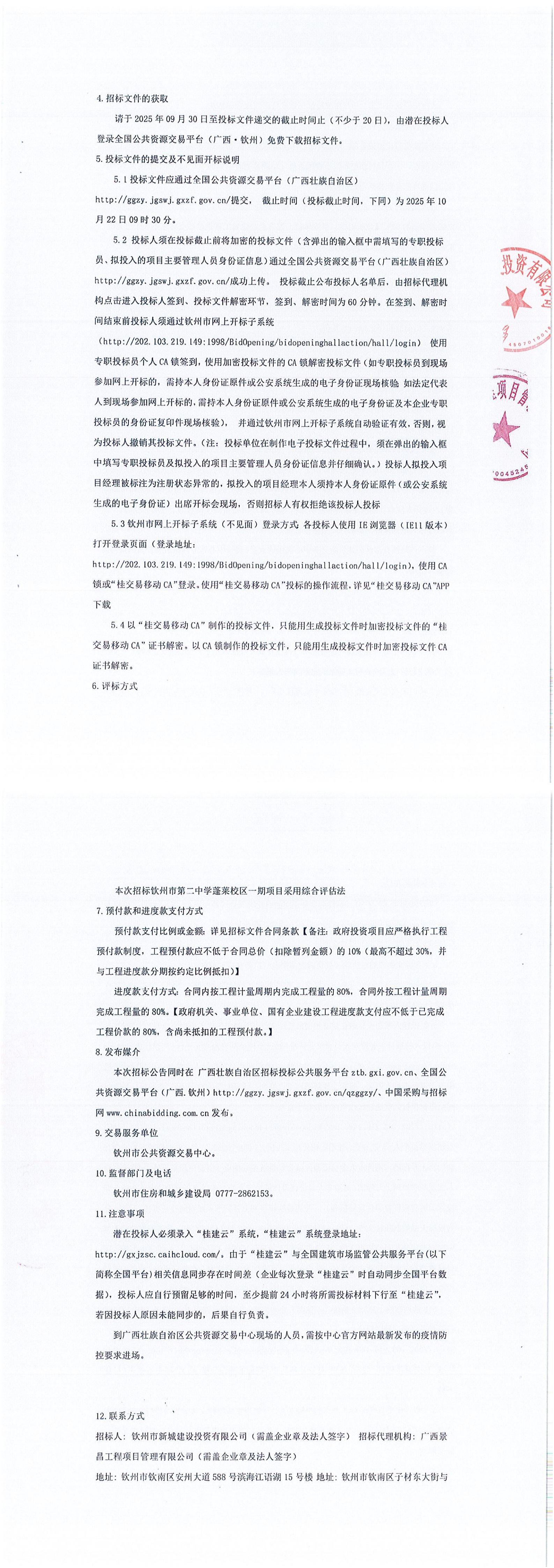 欽州市第二中學蓬萊校區(qū)一期項目施工招標公告