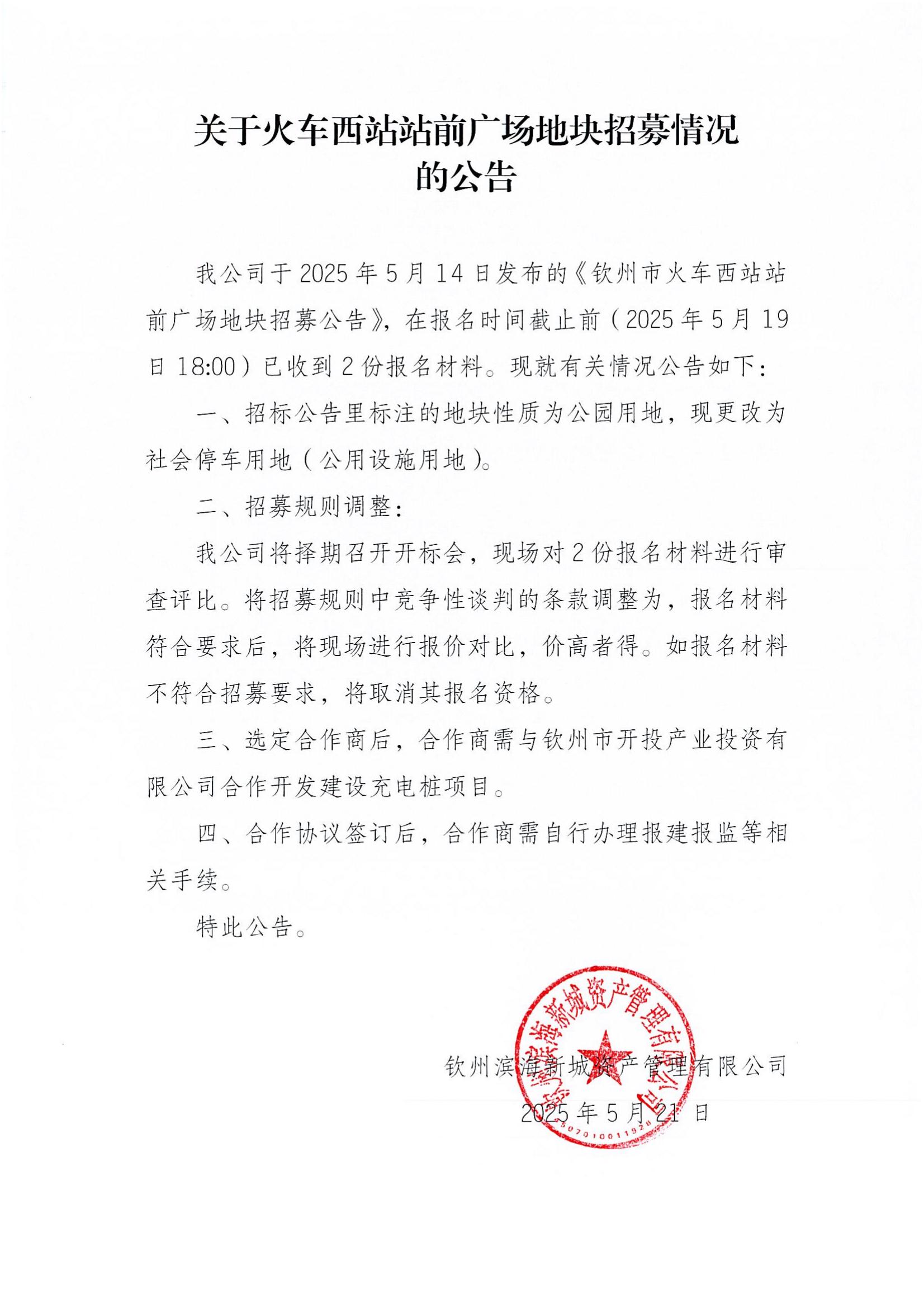 關(guān)于火車西站站前廣場(chǎng)地塊招募情況的公告