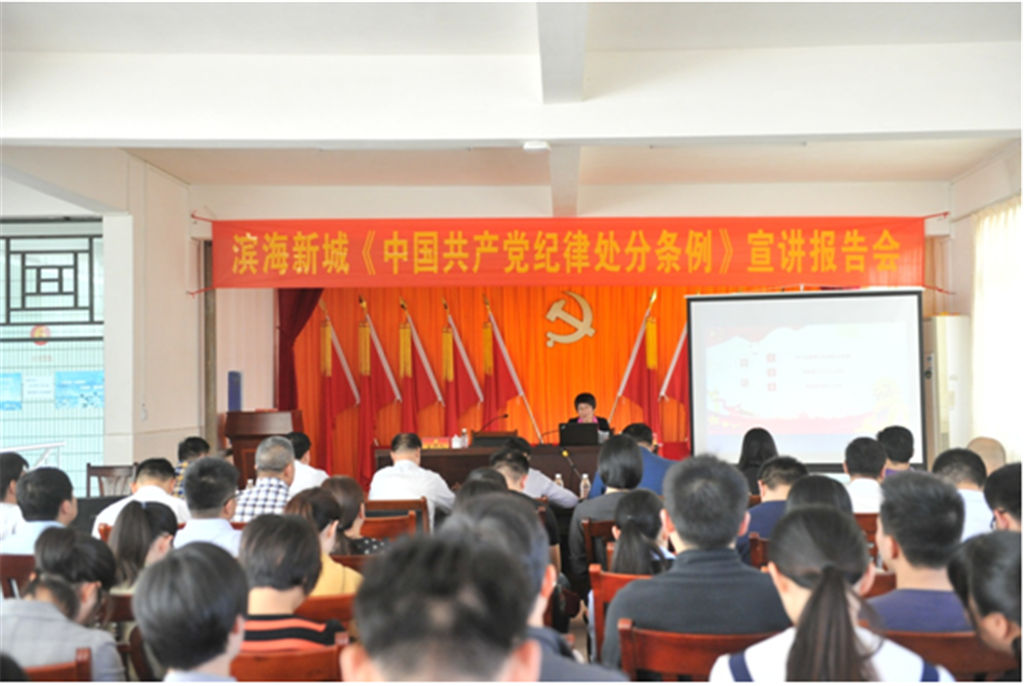 11月28日下午,市紀(jì)委駐市國(guó)資委紀(jì)檢組到市濱海新城召開(kāi)《中國(guó)共產(chǎn)黨紀(jì)律處分條例》宣講報(bào)告會(huì),對(duì)新修訂的《中國(guó)共產(chǎn)黨紀(jì)律處分條例》進(jìn)行了專題宣講。綜合監(jiān)督單位市濱海新城管委、市濱海置業(yè)集團(tuán)公司共70多名黨員領(lǐng)導(dǎo)干部聽(tīng)取了宣講。
