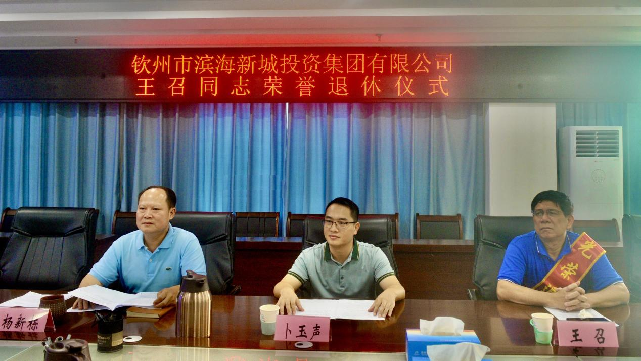 9月15日,市濱海投資集團公司舉行王召同志榮譽退休儀式,歡送王召同志,表達對他的關(guān)心關(guān)愛之情,也激勵年輕干部砥礪初心、奮發(fā)前進,為開創(chuàng)集團公司轉(zhuǎn)型升級新局面不懈奮斗。集團公司黨委副書記、紀(jì)委書記卜玉聲參加儀式,集團公司副總經(jīng)理、工會主席楊新棟同志主持儀式。