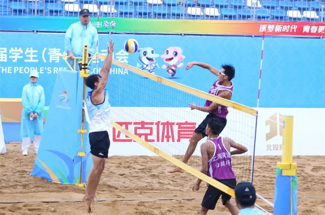 △學(xué)青會(huì)男子沙灘排球決賽。融媒體記者 肖鑫 攝