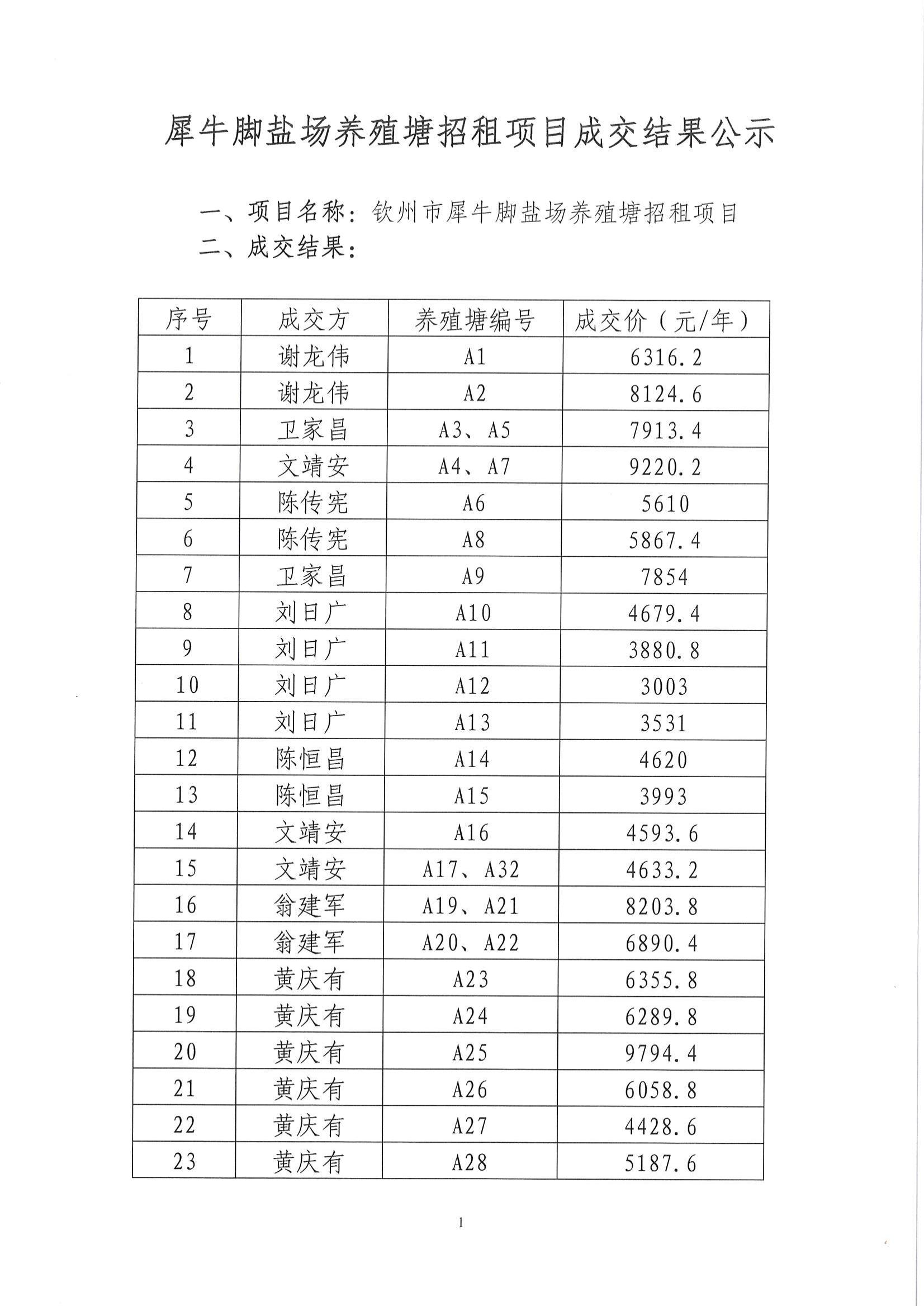 犀牛腳鹽場養(yǎng)殖塘招租項目成交結(jié)果公示