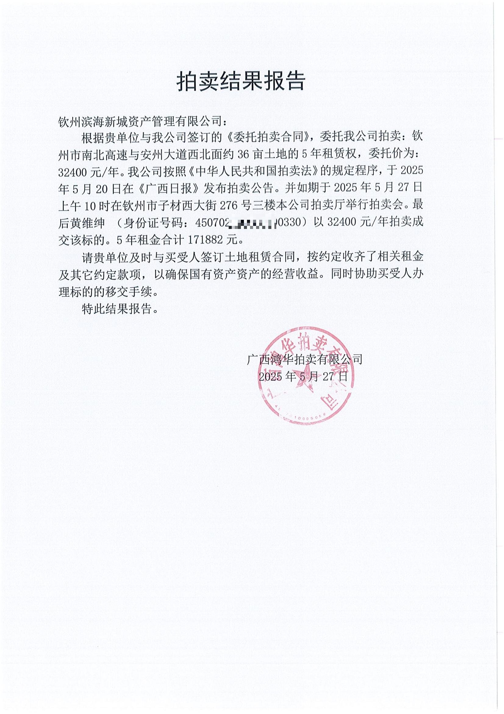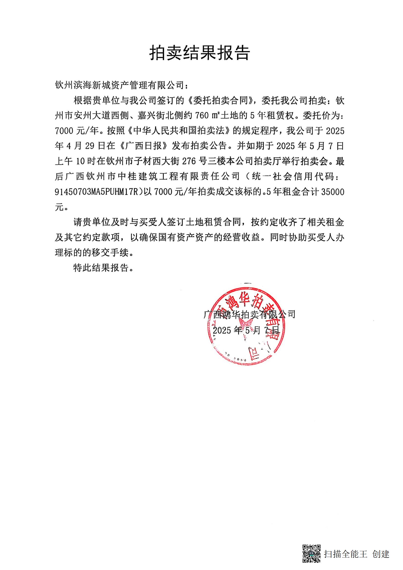 拍賣結(jié)果報告