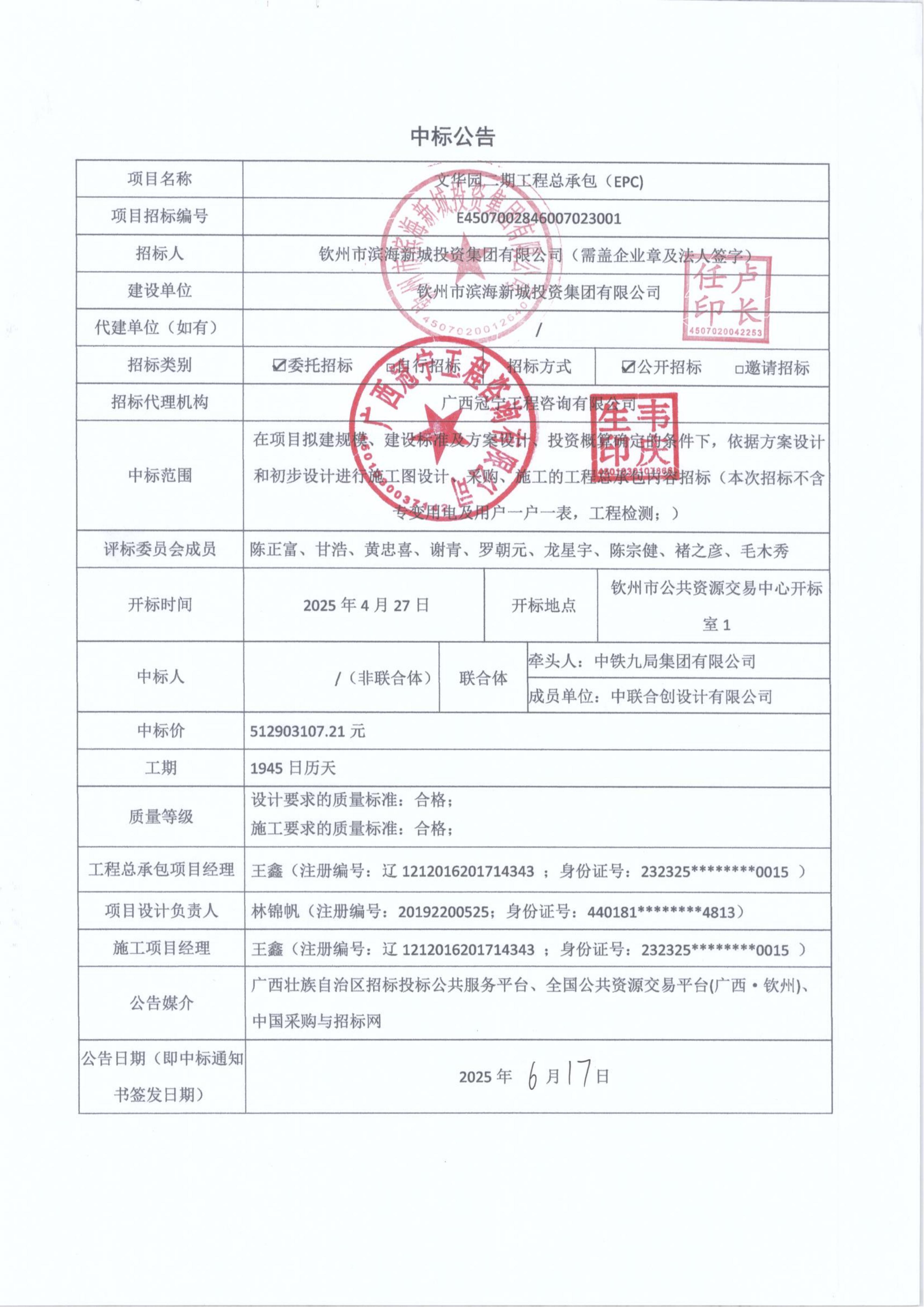 中標(biāo)公告(文華園二期工程總承包(EPC))