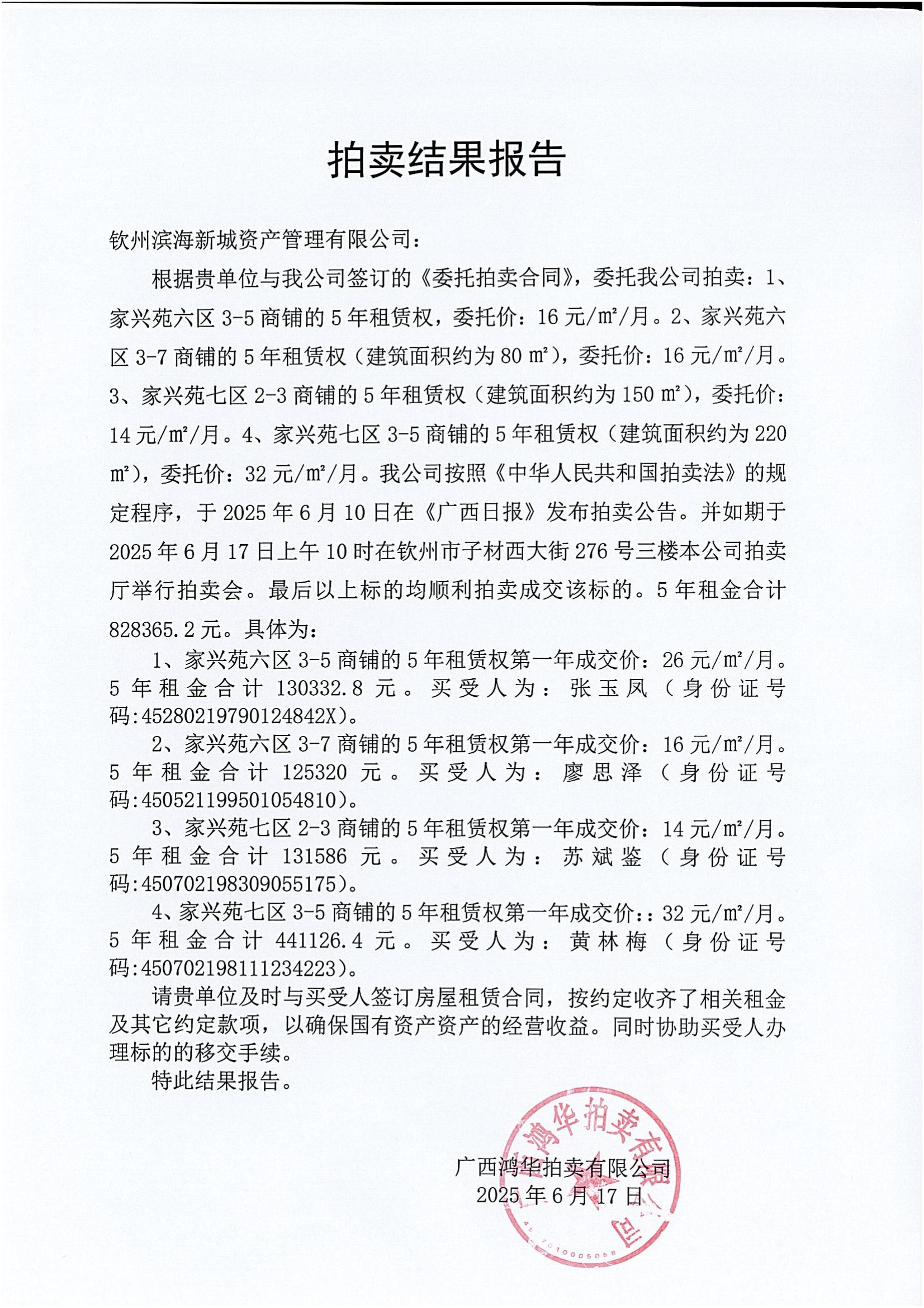 欽州市家興苑七區(qū)、安惠二園商鋪招租項目成交結(jié)果公告