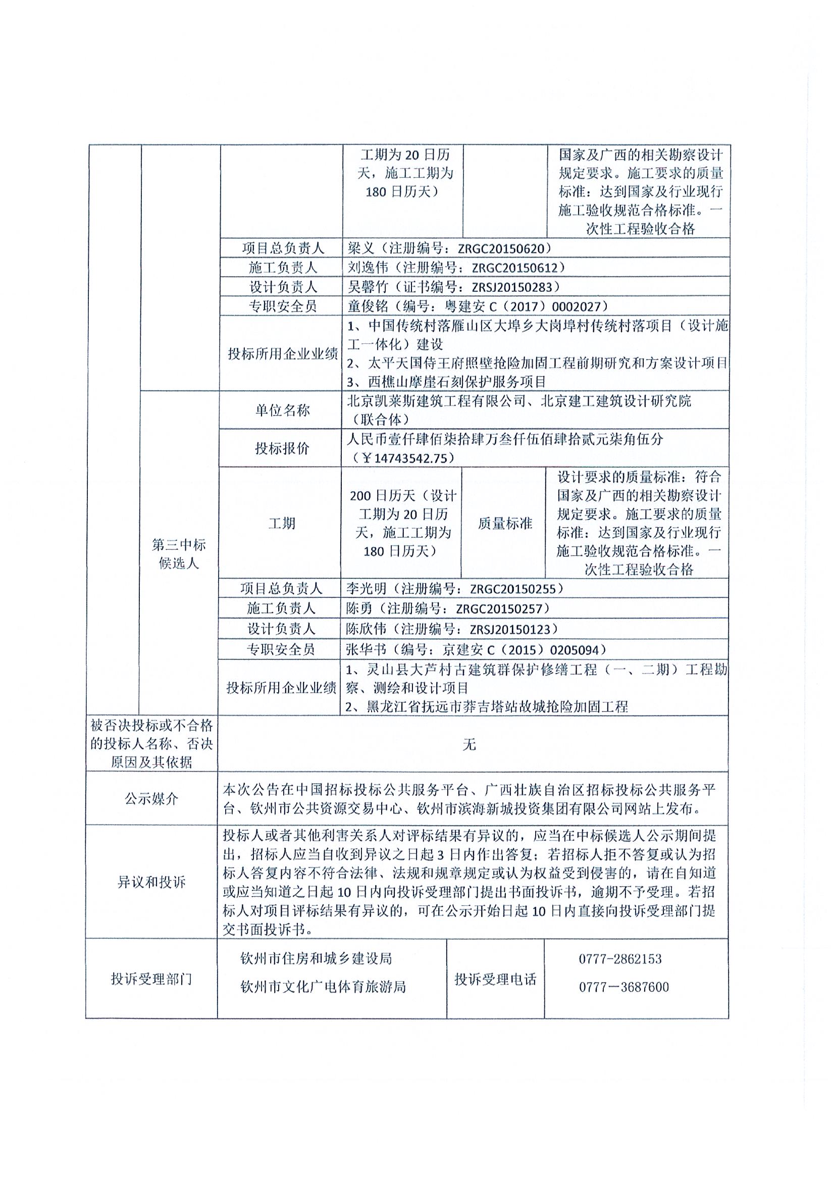欽州市中山路、占鰲巷旅游開發(fā)項目(一期)蘇廷有、天后宮修繕項目工程設(shè)計-采購-施工(EPC)工程總承包中標候選人公示