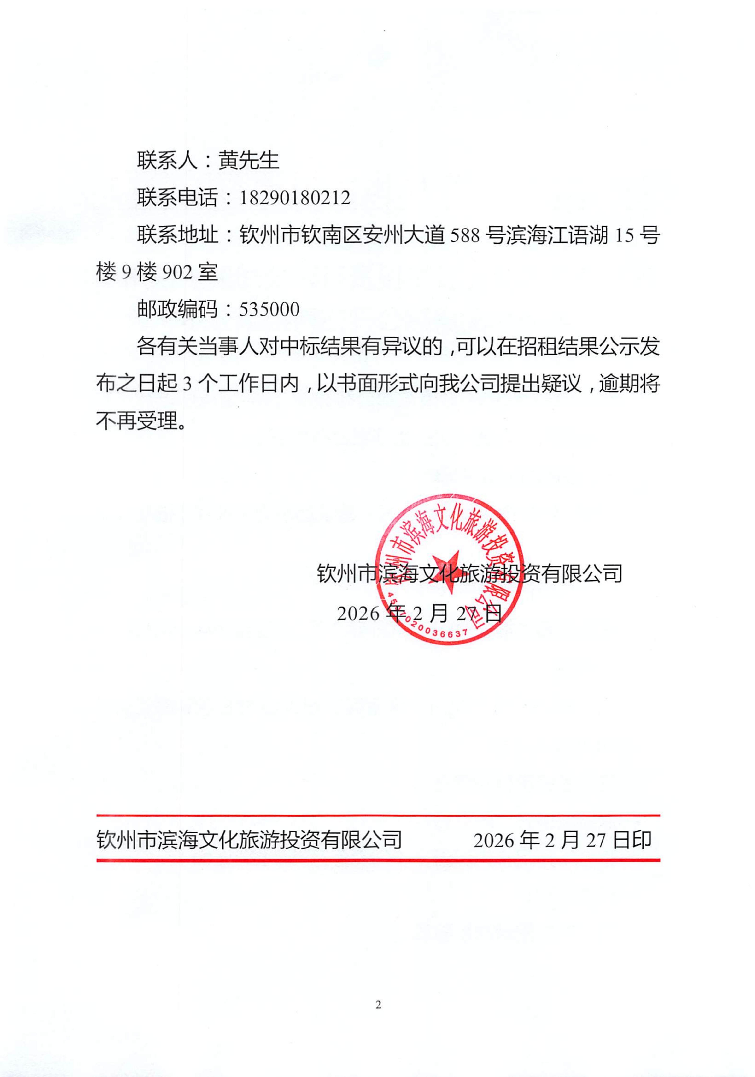 欽州市濱海文化旅游投資有限公司關(guān)于欽州市老街范圍房屋公開招租結(jié)果公示(欽州市中山路183號)