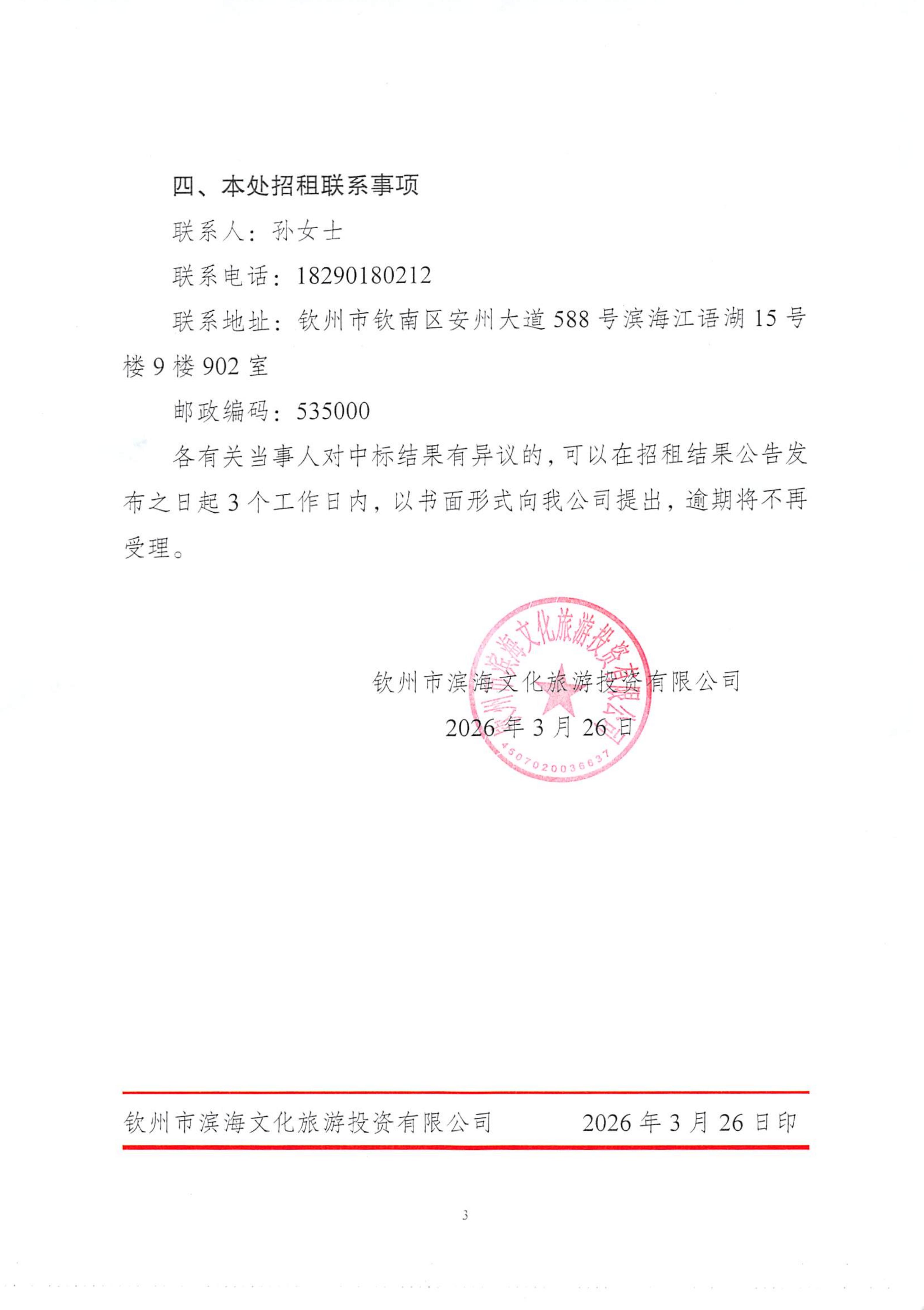 欽州市濱海文化旅游投資有限公司關(guān)于欽州市老街范圍5處房屋(場(chǎng)地)公開招租結(jié)果公示