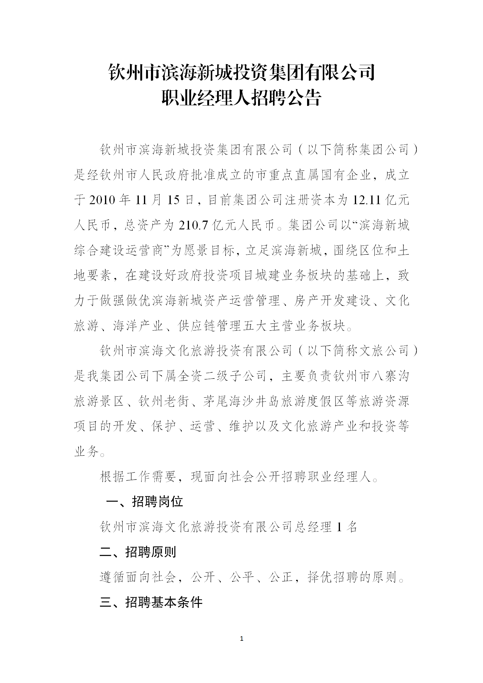 欽州市濱海新城投資集團(tuán)有限公司職業(yè)經(jīng)理人招聘公告