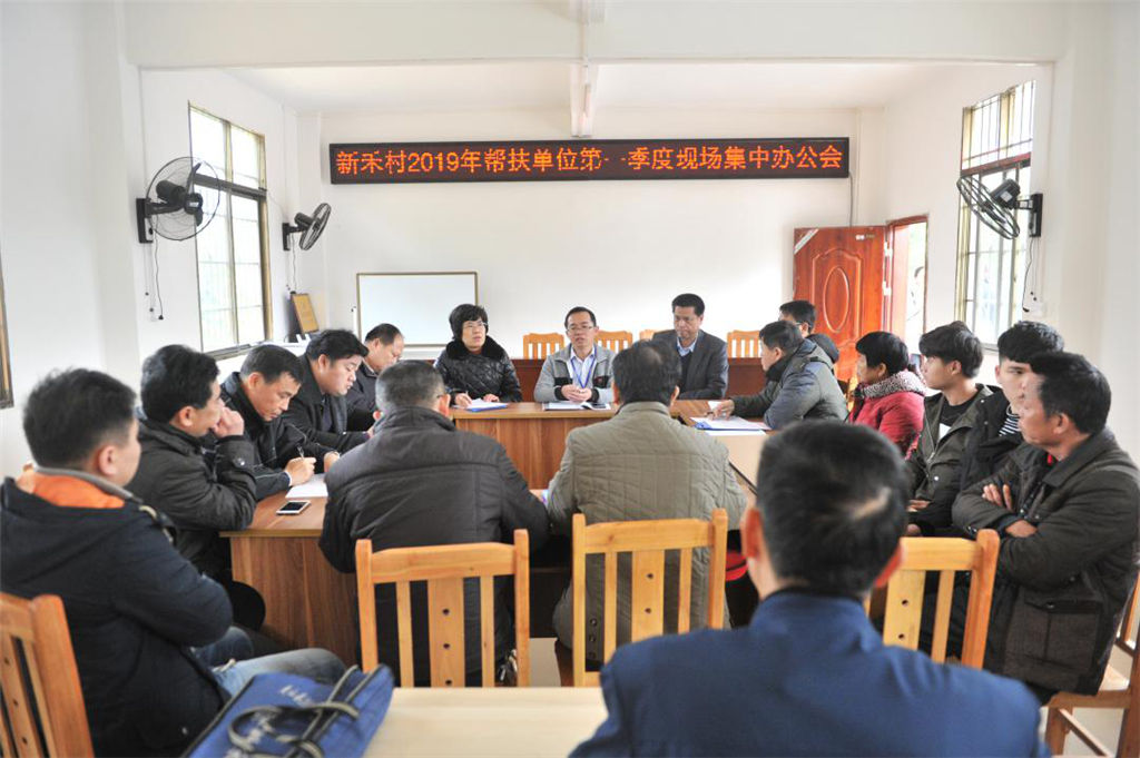 在開(kāi)展慰問(wèn)活動(dòng)前,新禾村三個(gè)后盾幫扶單位在二樓會(huì)議室召開(kāi)了201...