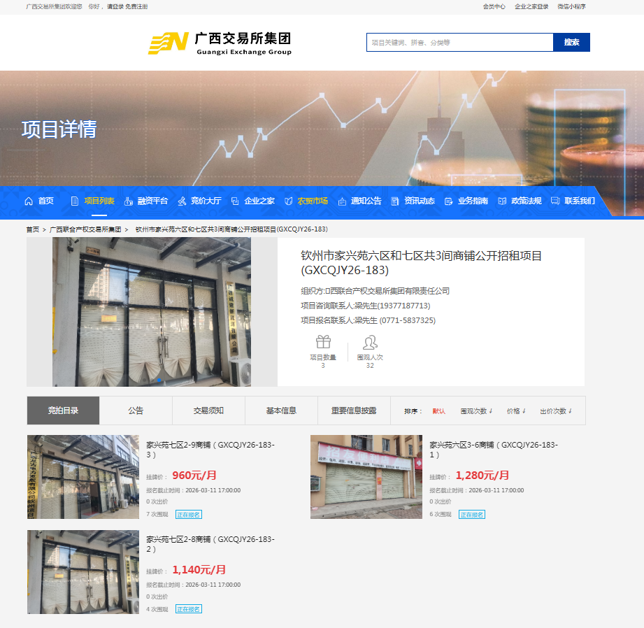 欽州市家興苑六區(qū)和七區(qū)共3間商鋪公開招租項(xiàng)目(GXCQJY26-183)