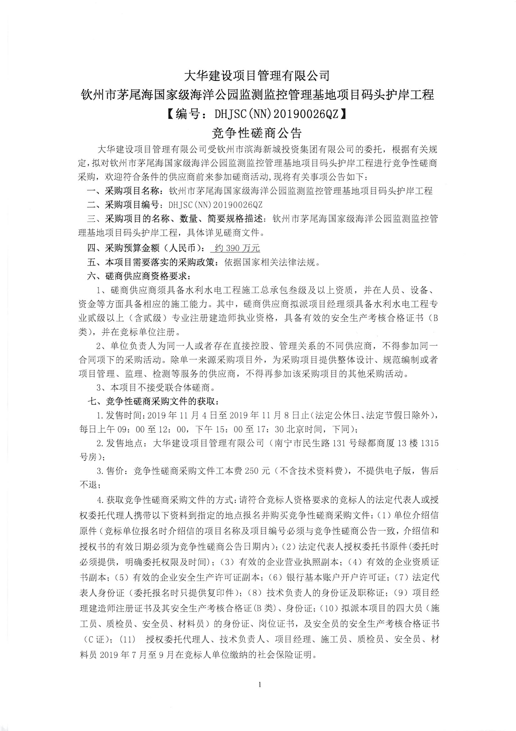 競爭性磋商公告--欽州市茅尾海國家級海洋公園監(jiān)測監(jiān)控管理基地項(xiàng)目碼頭護(hù)岸工程