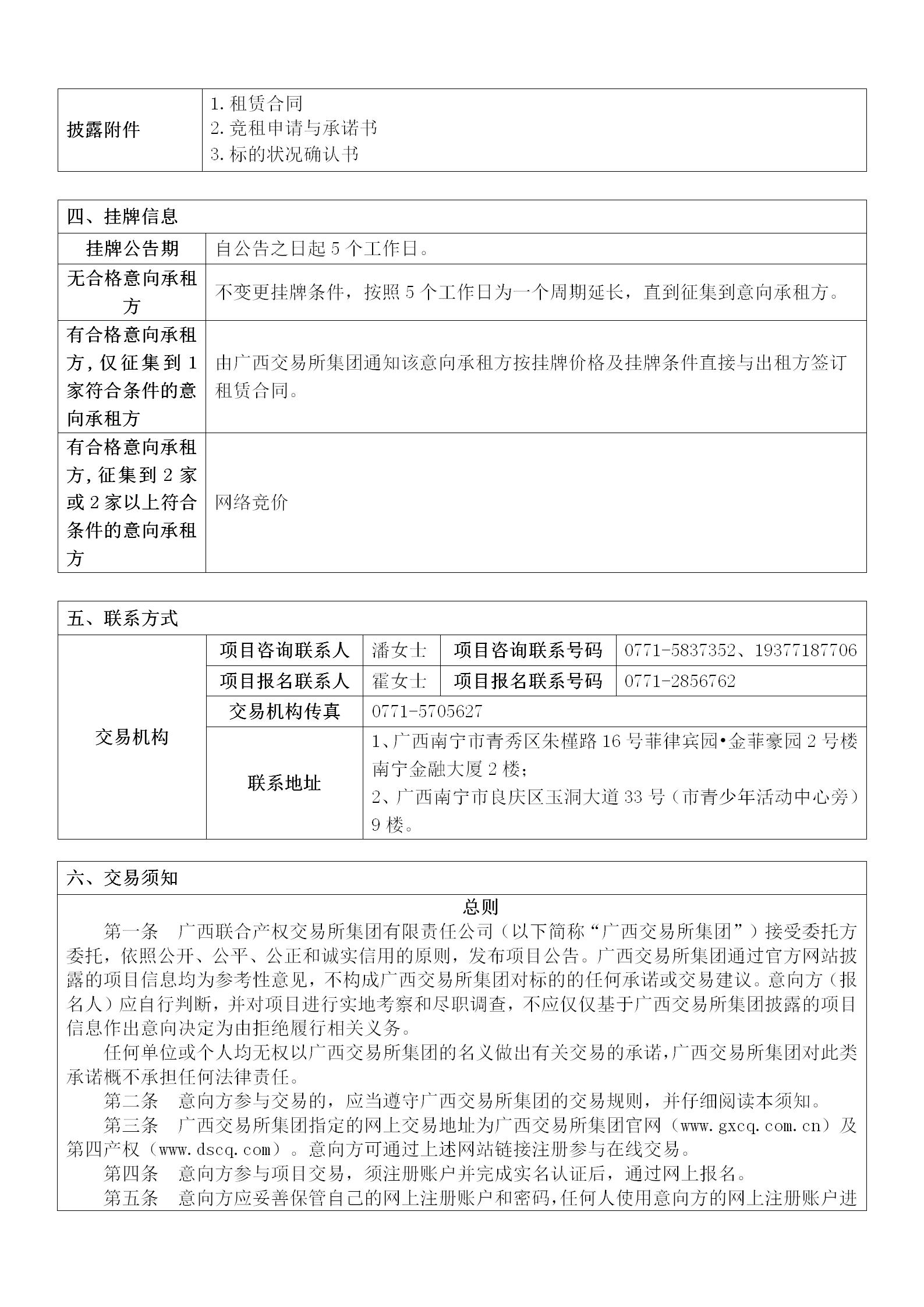 欽州市安惠一園幼兒園資產出租項目公告內容(公共資源)