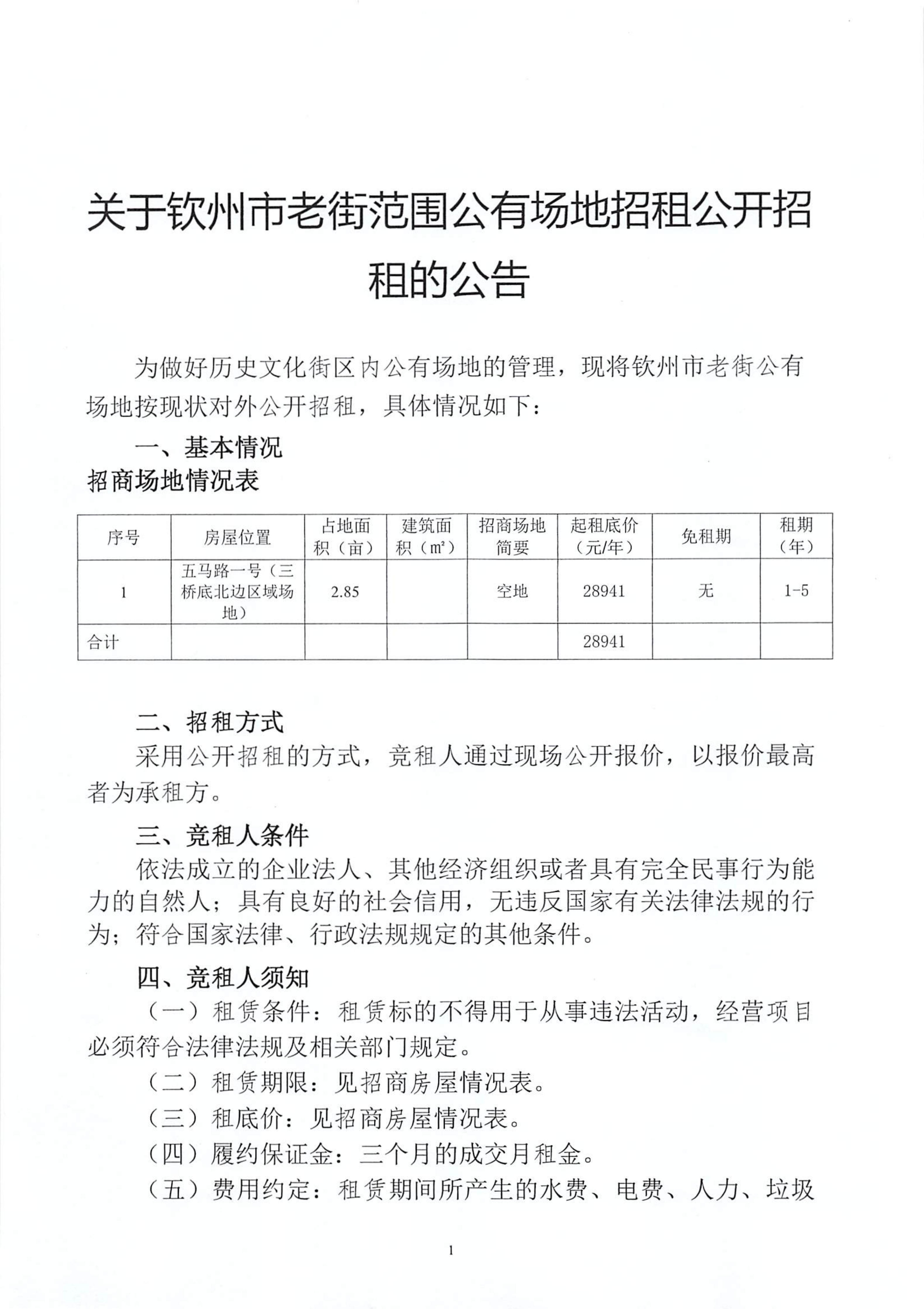 關(guān)于欽州市老街范圍公有場地公開招租的公告(五馬路一號三橋底北邊區(qū)域場地)